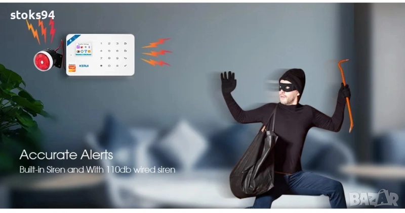 Gsm& WiFi smart компактна аларма. Известия и позвънява на телефон. SOS бутон. Звънец