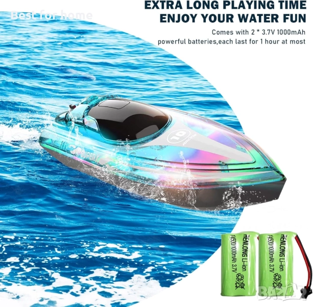 【Лодка с дистанционно управление с 1 час издръжливост】Оборудвана с мощни батерии 3.7V 1000mAh, тази презареждаща се светеща RC лодка за басейн може да плава максимум 60 минути след 2~3 часа зареждане с 1 батерия. Нещо повече, има още една резервна батерия за смяна (уверете се, че батериите са напълно заредени преди употреба). С 2 високопроизводителни презареждащи се батерии можете да се насладите на часове забавление с децата си с тази лодка с дистанционно управление в басейни и езера. Насладете се на водни забавления!