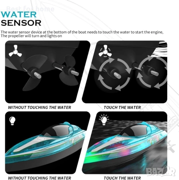 【Дизайн със сензор за вода】 С дизайн на превключвател със сензор за вода, RC лодките за момчета и момичета ще включат LED светлините автоматично и ще стартират двигателя само след като докоснат водата (Можете също да изключите светлините на дистанционното управление) (ЛОДКИТЕ НЕ МОГАТ ДА СЕ ДВИЖАТ ПО ЗЕМЯТА). Децата няма да пострадат, когато играят с RC лодката с LED светлини. Междувременно, тази безчеткова RC лодка е изработена от висококачествена екологична пластмаса със стандарти, определени от CE, ROHS, CPC. Насладете се на забавната лодка спокойно!