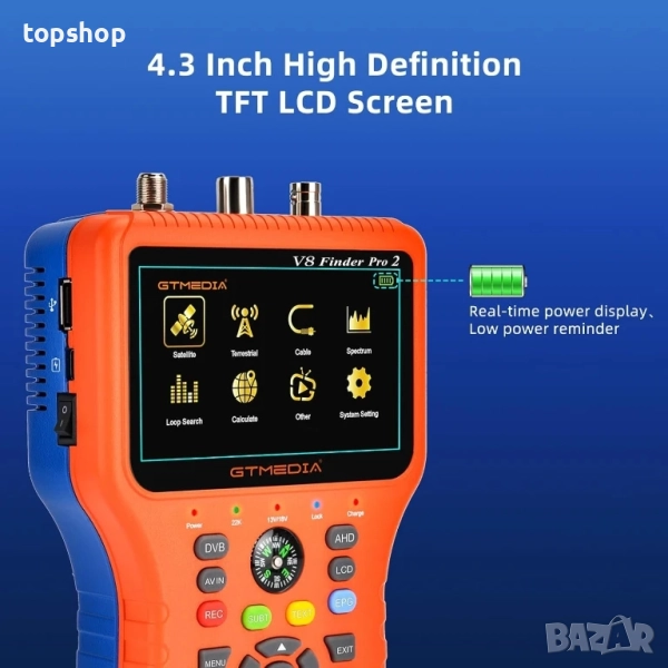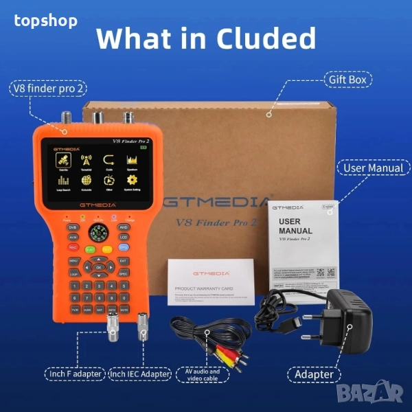 GT Media V8 Finder Pro Сателитен детектор, TV DVB-S2X/S2/S/T2/T/C приемник на сигнал, H.264 цифров..