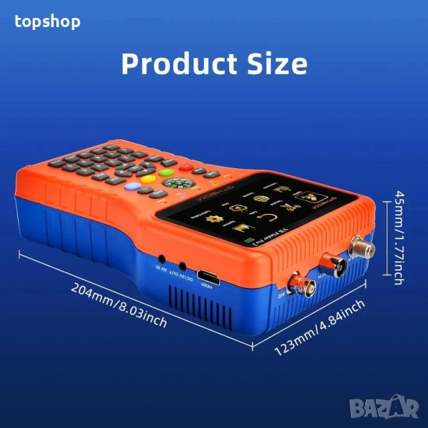 【Професионално измерване на сигнала】V8 finder pro sat finder предоставя прецизен анализ на сигнала за сателитни (DVB-S2X/S2/S) и кабелни/ефирни (DVB-T2/T/C) системи. С 10-битово H.265 декодиране и вграден спектрален анализатор, той предоставя на инсталаторите точни показания за силата и качеството на сигнала. Функцията за сляпо сканиране автоматично открива наличните канали.