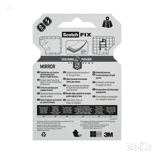 3M Scotch® FIX двойнолепяща монтажна лента за огледала 19mm x 1.5m