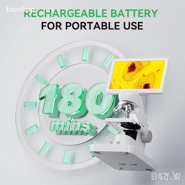 Акумулаторна батерия за преносима употреба: С акумулаторна батерия от 2000mAh, осигуряваща до 3 часа употреба, безжичният микроскоп е идеален за класни стаи, лаборатории, домове и други. Неговата гъвкавост и преносимост го правят подходящ за множество случаи.
