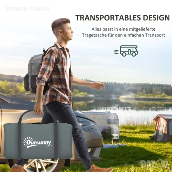 Включва дъждобран с воден стълб 3000 мм: Осигурява допълнителна защита от дъжд и гарантира сухо къмпингуване