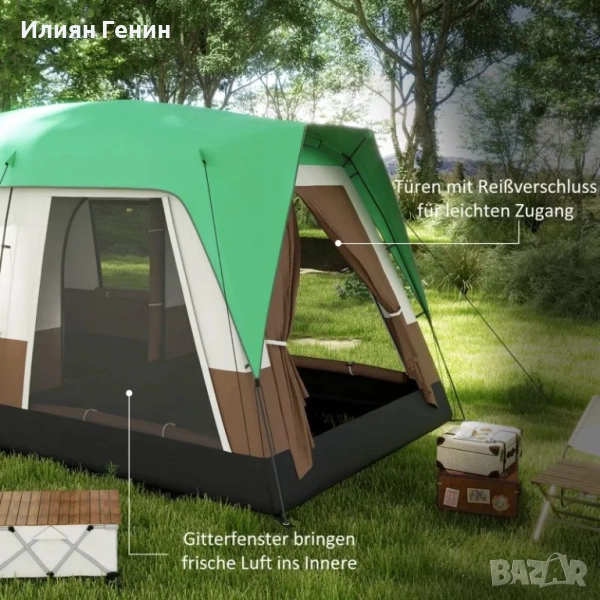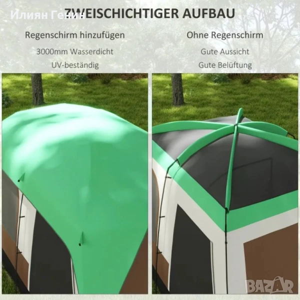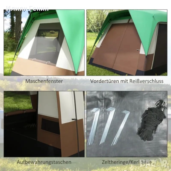 Къмпинг палатка Outsunny за 7-8 души, мрежест прозорец, с чанта за носене, 4.90 x 3.05 x 2.25 м, зелена - 350.00лв.
