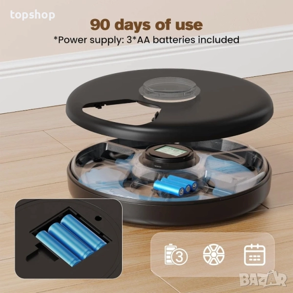 Безжична връзка и работа с батерии: Безжичният дизайн на тази автоматична хранилка за котки позволява поставянето ѝ навсякъде в дома ви. Захранва се от три AA батерии, не се нуждаете от специални батерии, което прави подмяната безпроблемна. Тази функция е идеална за различни домашни среди, носейки по-голямо удобство в живота ви.