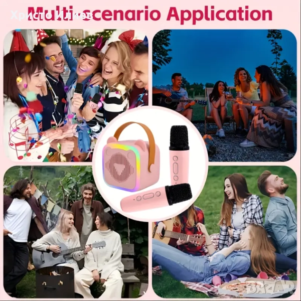 Мини караоке машината е оборудвана с 2 микрофона, които могат да бъдат сдвоени с Bluetooth незабавно, така че да можете да се насладите на забавлението от пеещите партита, а също така можете да използвате TF карта или USB устройство за игра. Носи ви различно изживяване, което е много подходящо за партита и събирания