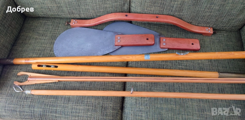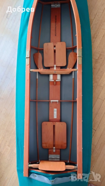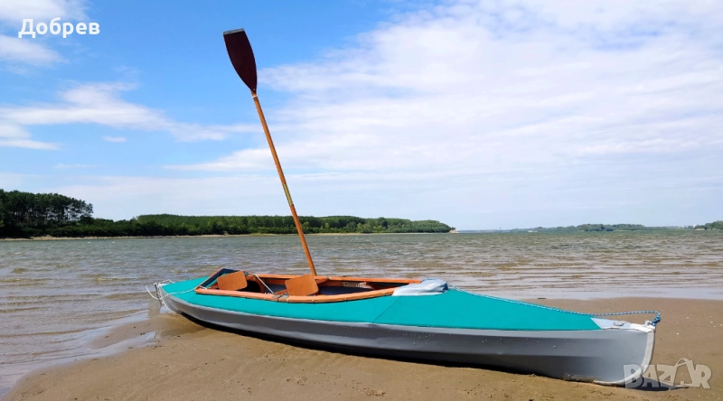 Перфектен Kolibri зелен двуместен каяк с 2 гребла и оригинален брезентен сак. Всички свързващи елементи подменени с месинг или инокс.