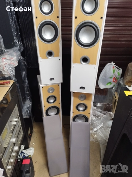 Трилентови озвучителни тела, тип на конструкцията отворен обем с предно разположен фазоинвертор/басрефлекс, отлични технически, много добър външен вид. Приложените снимки и видео са реални!