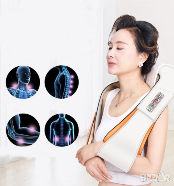 Шиацу 4D масажор за врат, гръб, плешки и рамене с функция затопляне → Обява 51566307