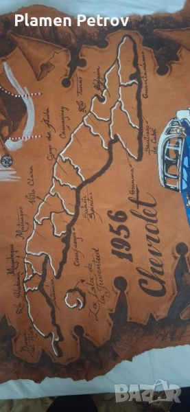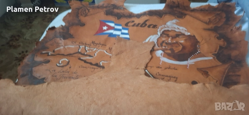 Пано Куба от естествена кожа, ръчно изработена и рисувана