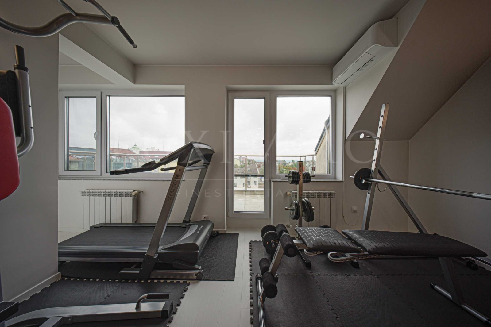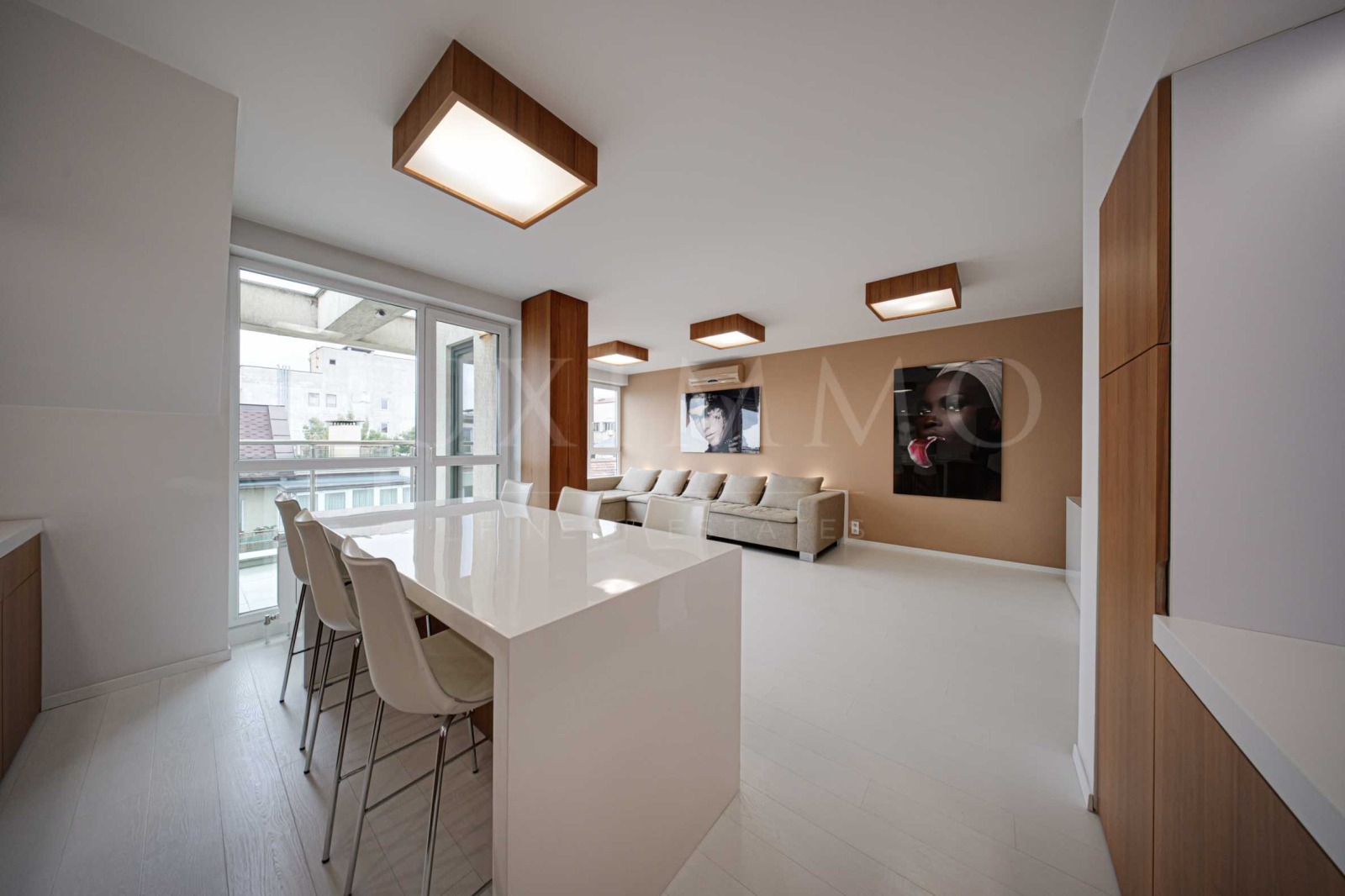 Представяме просторен, много луксозно обзаведен апартамент в идеалния център на града, в нова сграда, с подземно паркомясто (200 евро/391 лв. на месец). Намира се на целия седми етаж и има прекрасни панорамни гледки.