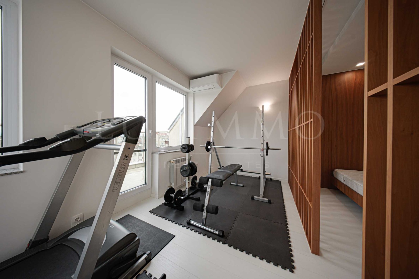 Всеки един детайл е проектиран да осигури максимален комфорт: прозорци от пода до тавана осигуряват много светлина, легло в основната спалня 2х2 метра, подгряване на огледалата в баните, за да не се изпотяват при вземане на душ, димиращи се светлини, висококачествени смесители от Grohe, много луксозен и удобен диван от датския лидер в луксозните мебели - BoConcept, електронно резе на вратите.