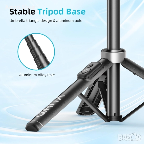 - Преносимият селфи стик може да се използва като селфи стик или статив. Стативът за селфи стик е лесен за настройване и се сгъва удобно, което е чудесно за пътуване и туризъм. С вградената си структура на статив с форма на чадър, той предлага по-голяма стабилност. Може да се трансформира в стойка за статив за телефон, което ви позволява да правите снимки на цялото тяло или групови снимки, без да държите стика.