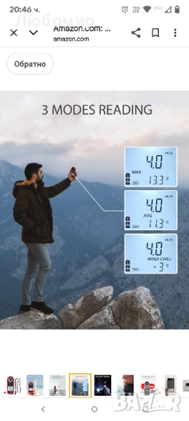 Ръчен анемометър Wintact, цифров измервател на скоростта на вятъра, тестер за скорост на въздушния поток с измерване на температурата на вятъра от 14℉ до 113℉ за ОВК канали, открито, кайт лодка, плаване, сърф (WT816)