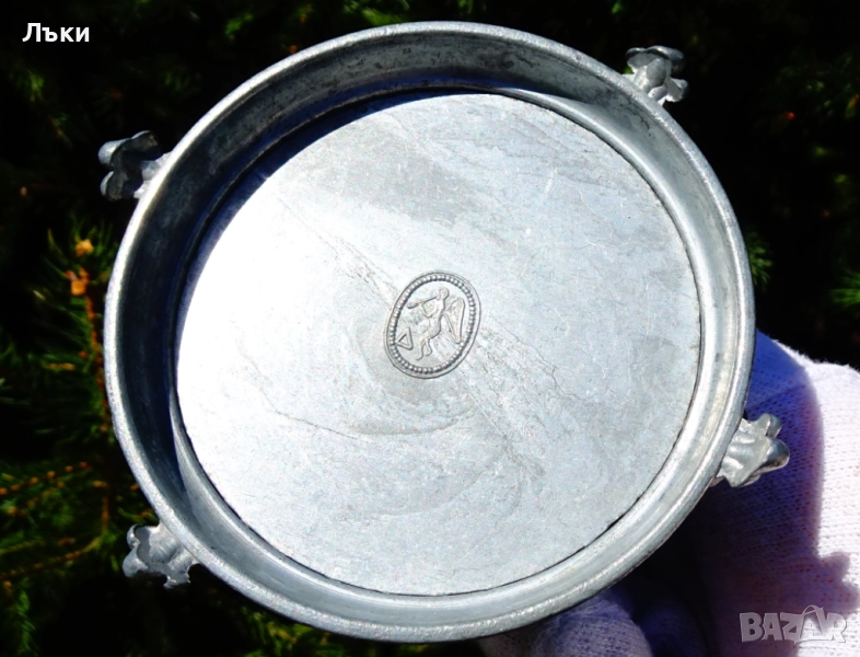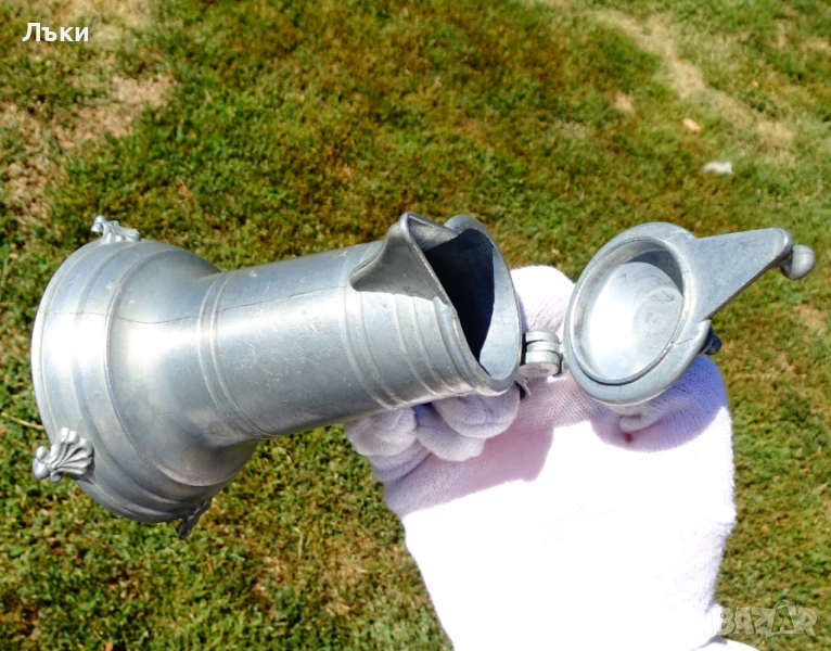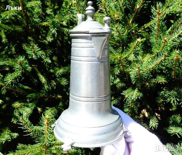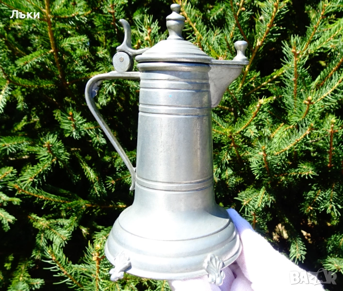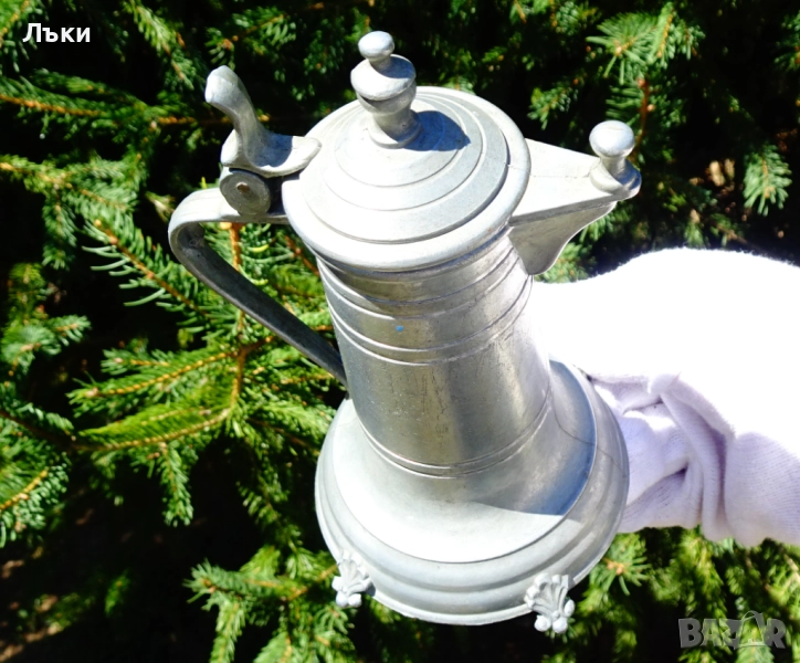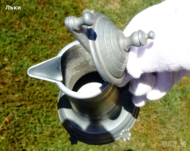 Старинна немска калаена кана с капак,за