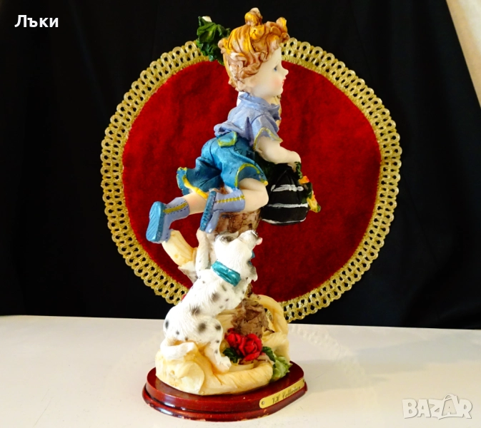 порцеланова статуетка,фигура на палаво момче,покатерено на дърво с голяма