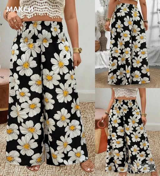 Макси модерен ефирен пола-панталон с висока ластична талия и мини странични цепки в черно на красиви цветя