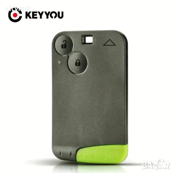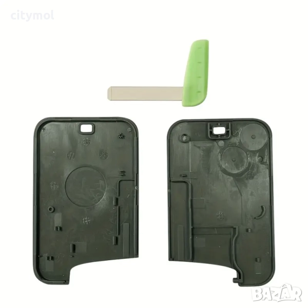 Kутийка за ключ-карта за автомобили Renault. Пластмасова кутийка с 2 бутона за контрол на дистанционните функции + новo ненарязанo острие с профил HU66 . Без необходимост от залепване при съединяване на двете части на кутийката една към друга. Лесно и бързо решение при нужда от замяна или ремонт на старата кутийка - електрониката от оригиналната кутийка се прехвърля в новата и двете части се съединяват чрез натиск и "клик" една към друга без нужда от използване на лепило. Без транспондер (чип) и електроника за дистанционното.
