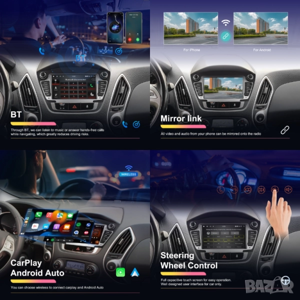 2GB+64GB цена 329.90лв, 4-ядрен процесор, Android Auto, CarPlay, Wi-Fi, RDS, AHD камера