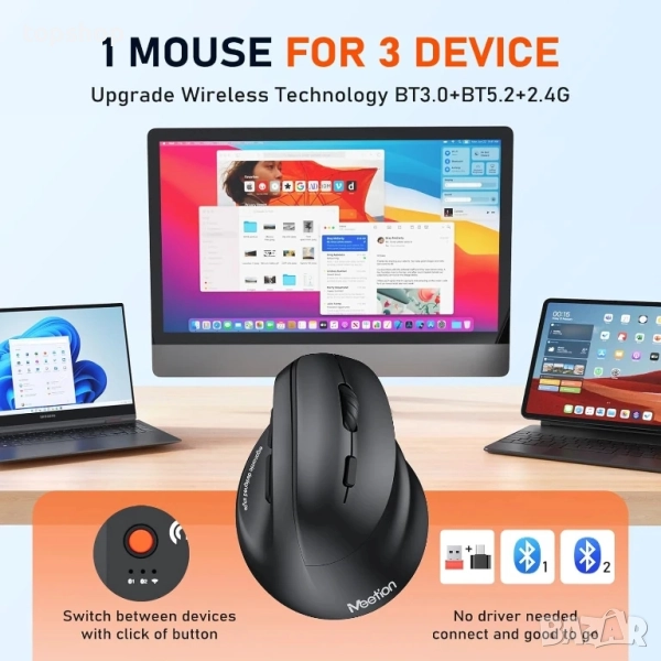 【Ергономична вертикална мишка】 Ергономичната вертикална мишка btm010 е щателно изработена с уникална вертикална форма, която намалява напрежението в китката и предмишницата, осигурявайки удобен и естествен захват. Тя насърчава по-ергономична стойка, облекчава дискомфорта и подобрява цялостния комфорт.