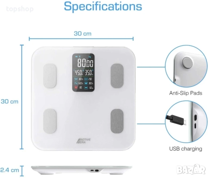 НОВА, ТЕСТВАНА Active Era® умен кантар с Bluetooth и приложение, литиева вградена батерия...