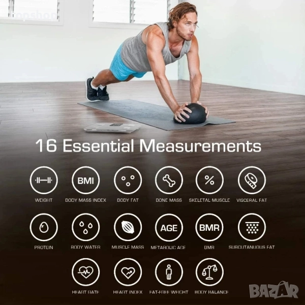 16 основни функции: Използва водеща в индустрията BIA технология за точни данни за телесния състав, включително тегло, индекс на телесна маса (ИТМ), процент телесни мазнини, висцерални мазнини, процент телесна вода, мускулна маса, костна маса, процент скелетни мускули, процент протеини, BMR и метаболитна възраст. Всички те се виждат в приложението Active Era Smart.