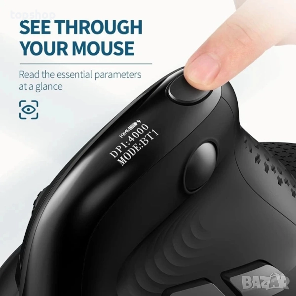 Виж през мишката си: Първата в света вертикална мишка с OLED екран, прочетете основните параметри с един поглед. Проверка на капацитета на батерията, нивото на DPI и режима на свързване, вместо чрез софтуера.