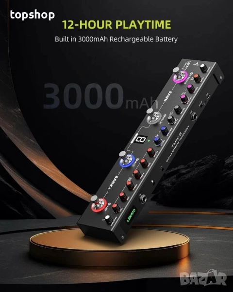 Дълго време на работа: Вградената батерия от 3000 mAh, този китарен ефектен процесор може да работи 12 часа, което означава, че можете да работите, практикувате или записвате с него цял ден.