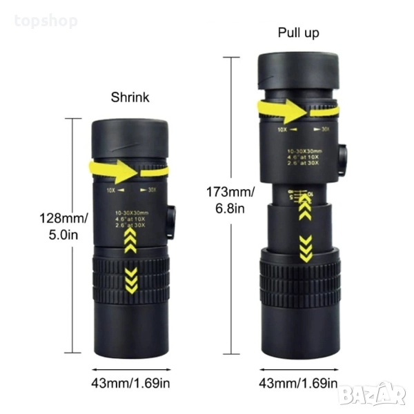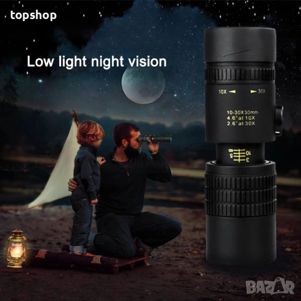 Висока разделителна способност: Високопроизводителният монокъл поддържа увеличение от 10x до 300x, разтягане, завъртане и мащабиране. Зрително поле: 80,5 м - 45,5 м / 241,5 фута - 136,5 фута (1000 м / 1000 ярда).