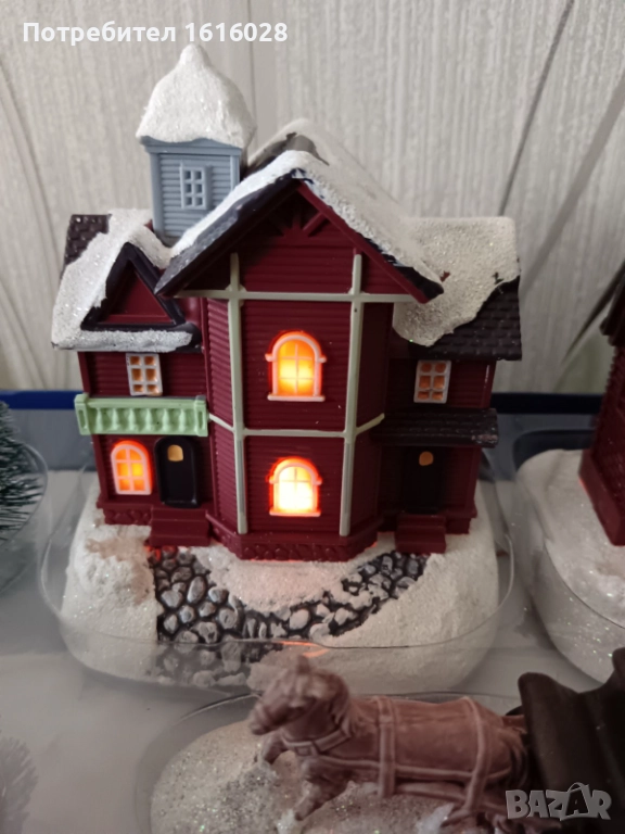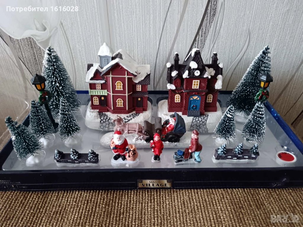 Нови LED светещи селца на фирмата MAGIC VILLAGE.с 2 светещи къщички, общо от 17 фигури. Всяка къщичка свети,работят с 2 батерии АА включени в комплекта и тест бутон за проба. Всяка фигурка е със самостоятелна поставка и може да се декорира на различно място и да се комбинират с други фигурки и играчки на фирмата MAGIC VILLAGE.за приказна Коледна декорация около елхата,които може да видите в други мои обяви..