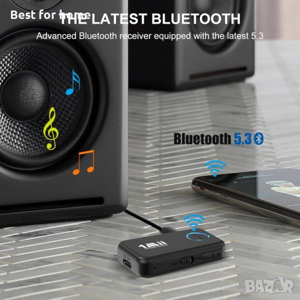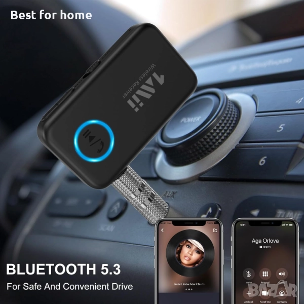 1Mii Bluetooth 5.3 музикален приемник за кола/домашна стерео система, Aux Bluetooth адаптер за кола с контрол на силата на звука, поддържа разговори със свободни ръце, 16 часа живот на батерията.