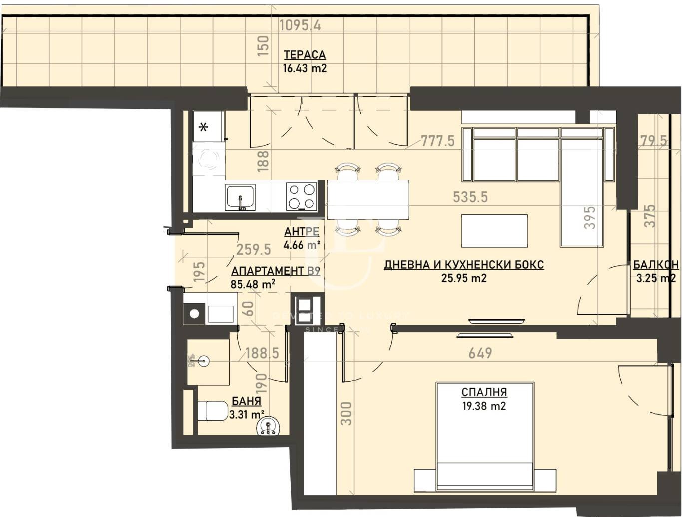 Unique Estates има удоволствието да представи стилен двустаен апартамент с площ от 85.48 кв.м. в новостроящ се бутиков комплекс в престижния квартал Бояна. Жилището впечатлява с функционално разпределение и изчистен модерен дизайн състои се от просторна дневна с кухненски бокс (25.95 кв.м.), светла спалня (19.38 кв.м.), антре (4.66 кв.м.), баня (3.31 кв.м.), голяма тераса (16.43 кв.м.) и допълнителен балкон (3.25 кв.м.). Апартаментът е проектиран с внимание към детайла и предлага комфорт на високо ниво отопление на газ с подово отопление и алуминиева дограма с троен стъклопакет за енергийна ефективност и уют. Комплексът включва три елегантни сгради с модерна архитектура, подземни паркоместа, контролиран достъп и отлично поддържани общи части. Локацията съчетава спокойствие и чист въздух с бърз достъп до центъра на София, а в района се намират училища, супермаркети и всички необходими удобства, което прави имота отличен избор за съвременен и хармоничен начин на живот.