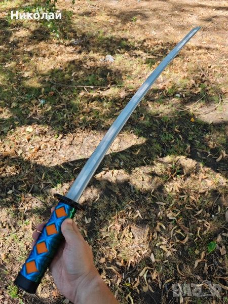 Меч катана с хамелеонова зелено и синя оплетка и разтегателно острие