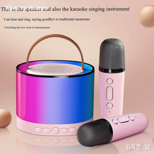 Мини караоке машината е оборудвана с 2 микрофона, които могат да бъдат сдвоени с Bluetooth незабавно, така че да можете да се насладите на забавлението от пеещите партита, а също така можете да използвате TF карта или USB устройство за игра. Носи ви различно изживяване, което е много подходящо за партита и събирания