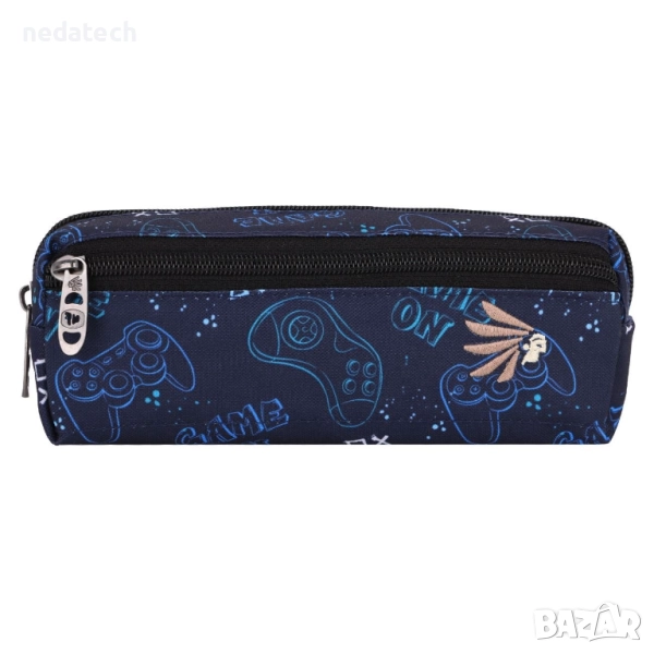 Несесер с 3 отделения и цип, серия 15NF36, в син цвят с дизайн на игрална конзола и надпис "Game on".