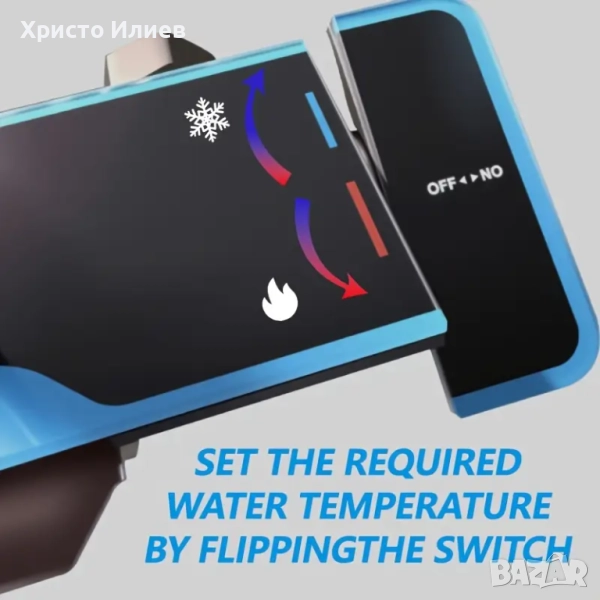 Комплекта съдържа батерия с модерен дизайн с 4 бутона за избор на режим на работа и бутон с Термостат за регулиране на температурата на водата