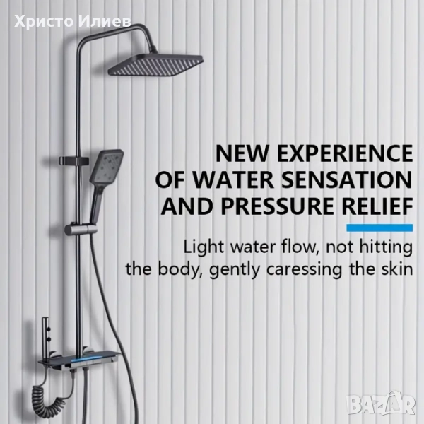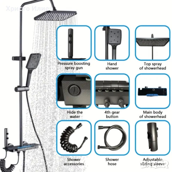 Луксозна Душ система с термостатен смесител 4 функции бутони функция дъжд