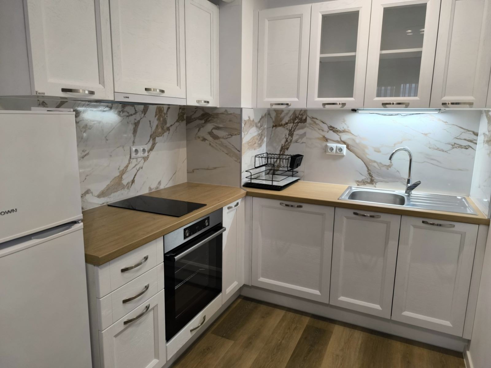 ❄️ Климатик, вградена фурна, котлони, хладилник, пералня, телевизор.