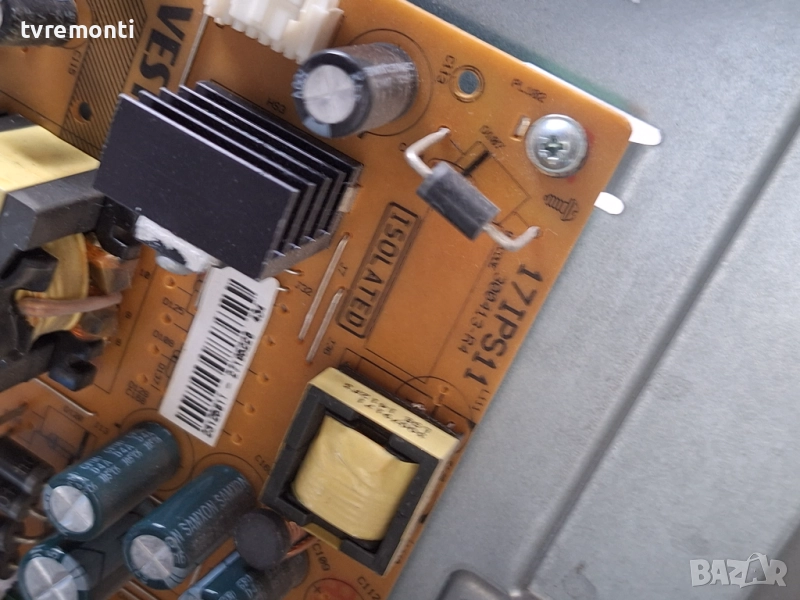 Power Supply 17IPS11 за 32-инчов телевизор Crown LED32185 , с дисплей VES315WNDA-02. Платката е използвана, но гарантирано работеща, демонтирана от телевизор със счупен дисплей. Тествана е от нашия техник.