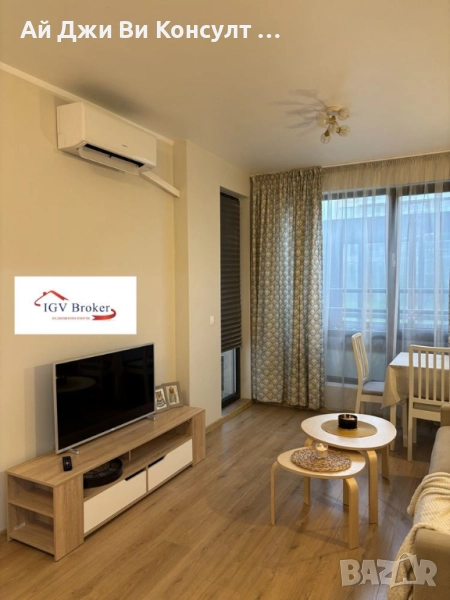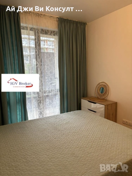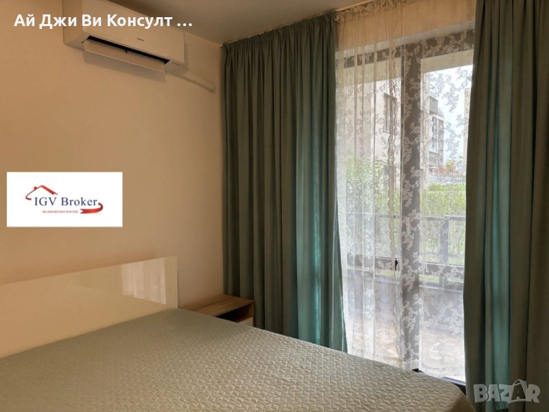 Агенция за недвижими имоти IGV Consult Предлагам двустаен апартамент под наем в затворен комплекс. Апартамента е напълно оборудван с всички необходими висок клас електроуреди. Отоплението е на ток с два климатика Fujitsu. Разпределението е: входно антре, баня с тоалетна, спалня, хол с кухня, тераса и индивидуално дворно пространство отделено с жив плет. Апартамента се намира във вътрешната страна на комплекса, следователно е много тихо и спокойно. Комплекса разполага с голямо дворно пространство, което може да се използва за разходка или почивка. Разположен е в близост до бул. Симеоновско шосе, което предлага бързо излизане към Околовръстен път или Център. В близост има два голями хипермаркета. Не се приемат домашни любимци!