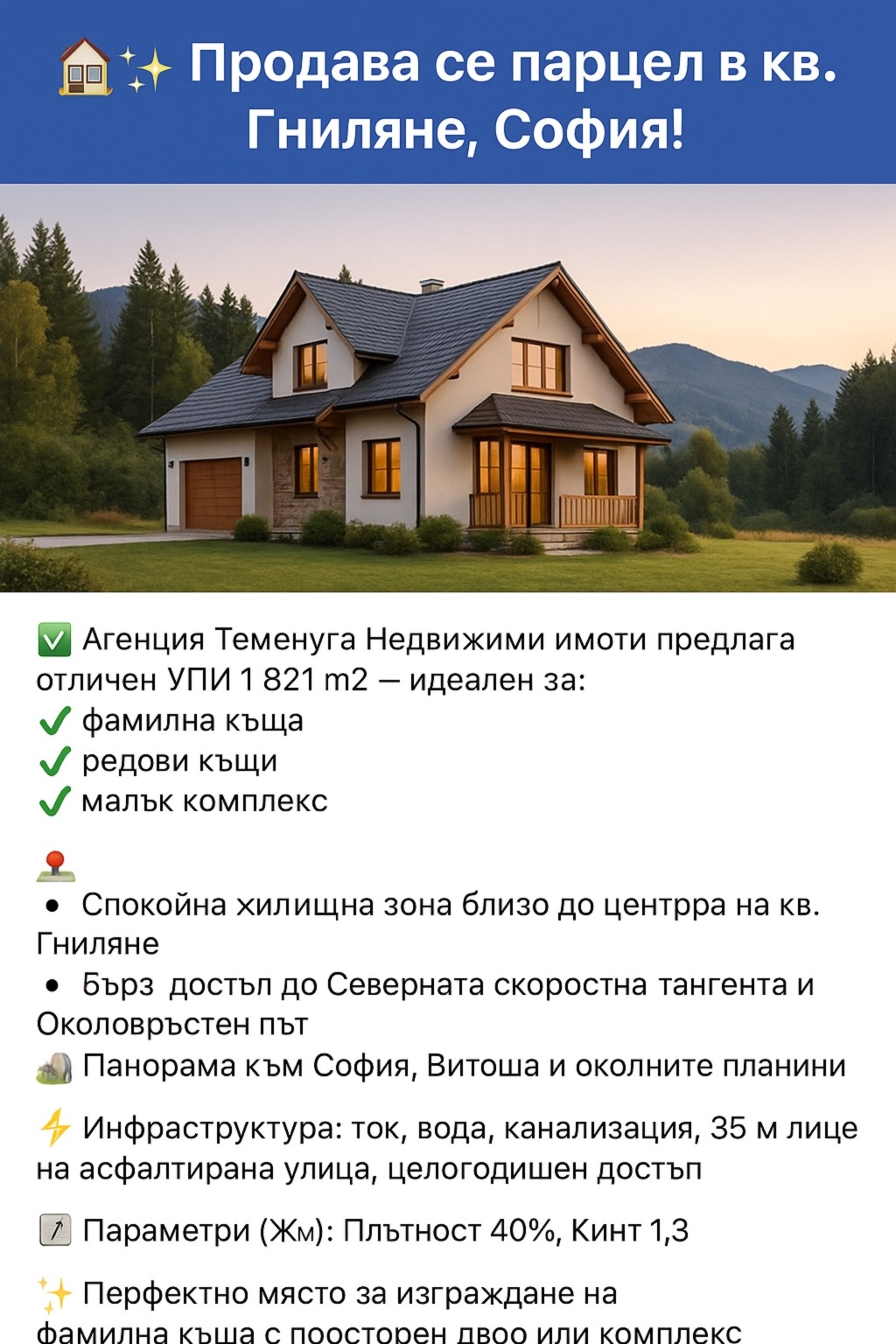 ✨ Отличен имот за хора, които търсят баланс между тишина и природа, и в същото време удобен достъп до София!