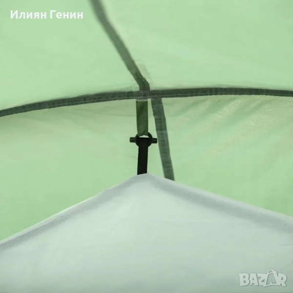 Удобен дизайн: Палатката има две врати, едната отстрани, а другата отпред, за лесен достъп. Куката за