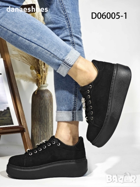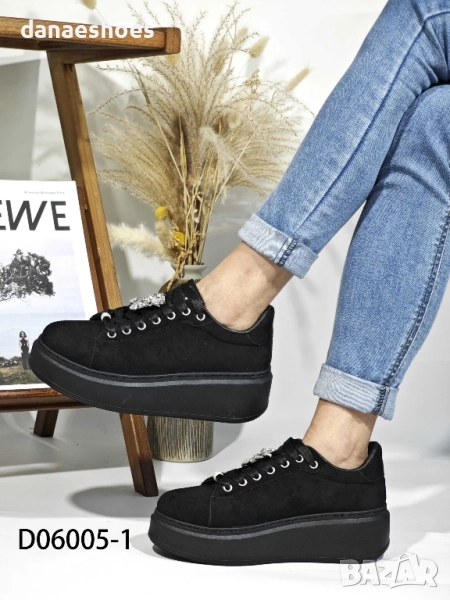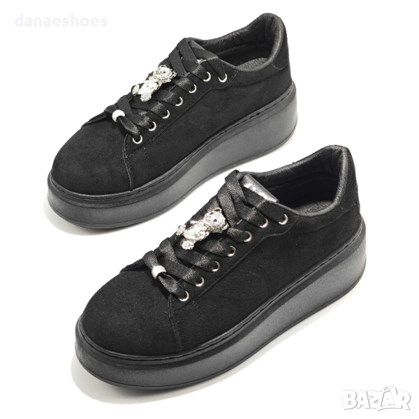 Дамски спортни обувки на платформа. Изработени от еко велур с метален аксесоар мече на връзките, който може да се свали. Много леки и удобни. Хит за този сезон. Номерация 36-41. Налични и в св.кафяво.