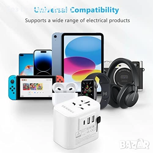 Универсален адаптер за пътуване с 2 USB-A и 1 Type-C порт