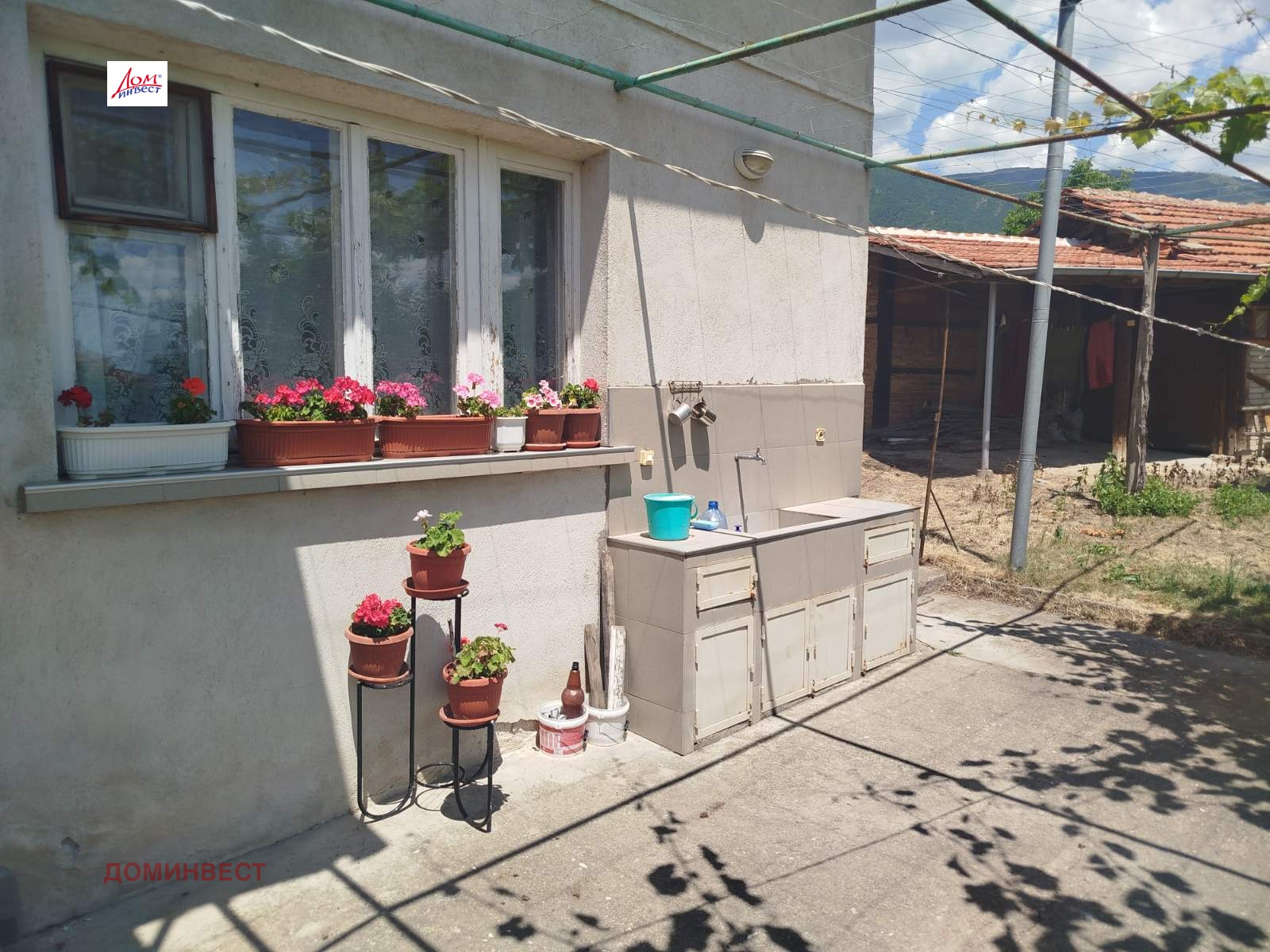 КЪЩАТА е 70 кв.м./тухлена с плоча/. Състои се от всекидневна с кухня, спалня, баня с тоалетна, килер, остъклена тераса и висока таванска част подходуща за надстрояване. Отпадните води са на септична яма. Има кладенец с помпа, външна чешма с бетонна мивка, стопански постройки и подход към двора от транспортна и пешеходна врата. В двора има асми и плодни дръвчета.