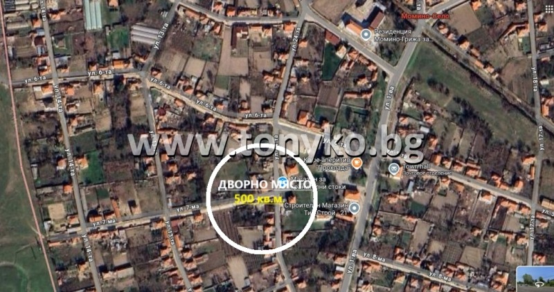 реф-. 621356 ТОНИКО имоти предлага ДВОРНО МЯСТО - УПИ 500 кв.м. в центъра на Момино село, на 30 км от Пловдив. Отличен достъп до града, до Икономическа зона 'Тракия'. Парцелът е ЪГЛОВ с лице 30 м към едната улица и 17 м към пряката улица. В имота може да се построи къща до 3 етажа, до 300 кв.м. застроена площ, до 600 кв.м. РЗП (разгъната застроена площ). Плътност 60 %, Кинт 1,2. Изключително изгодна оферта както за инвестиция, така и за постоянно живеене.