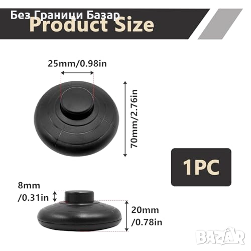 Нови 2 броя комплект Крачен бутон за лампа 70мм – Черен превключвател Push ON/OFF