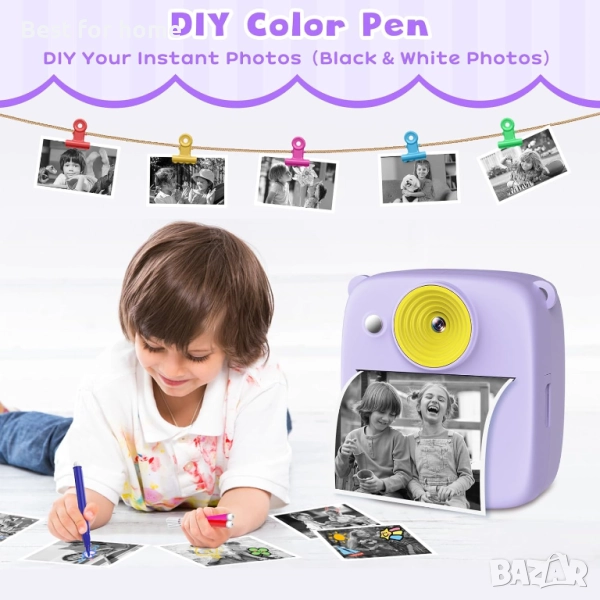 【Фотоапарат за моментално печатане без мастило за деца】Децата могат лесно да отпечатват черно-бели снимки в реално време за секунди директно от корпуса на фотоапарата, без мастило. Този фотоапарат за моментално печатане се предлага с три ролки хартия за печат, което позволява на децата да се отдадат на радостта от моменталното печатане, докато изследват света на фотографията!