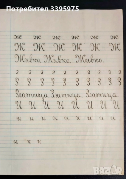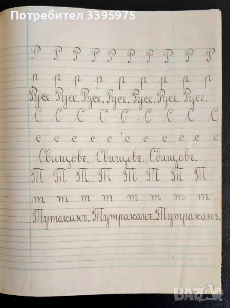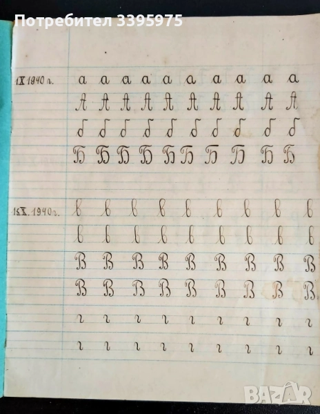 Продава се рядък исторически комплект: Тетрадка на ученик от 1-ви клас с красиви образци на калиграфия, датирана от 1940 г.
